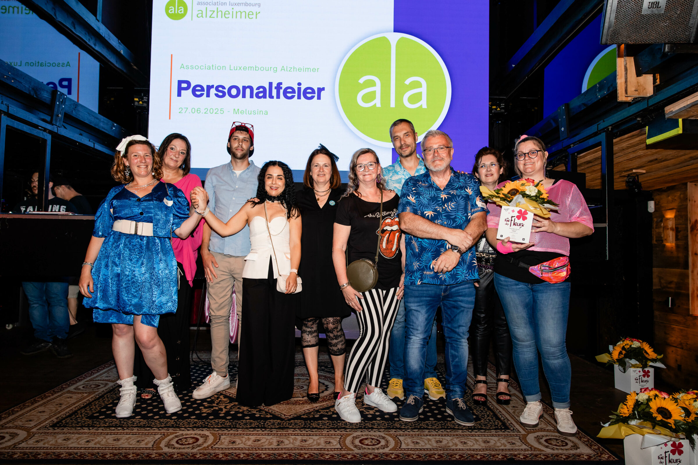 Le 27 juin 2025, la fête du personnel de l’ala a eu lieu au Melusina au Grund. La direction, les membres du conseil d’administration et les collaborateurs de l’ala étaient ravis de se pouvoir faire la fête dans une atmosphère décontractée. Le thème était les années 80. Lors de cette belle soirée, une série de collaborateurs ont également été honorés pour leurs 10, 15 et 20 ans de services.